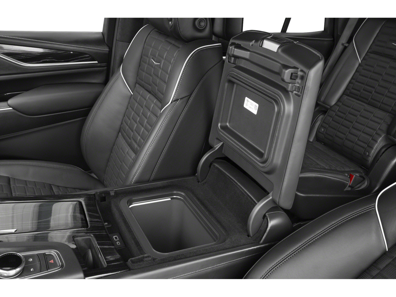- CONSOLE REFRIGERATOR with freezer mode, covered storage, large and small storage bins, dual cup holders, second row electronic climate and heated seat controls. Also includes auxiliary power outlet, USB A/C ports and 110-volt outlet